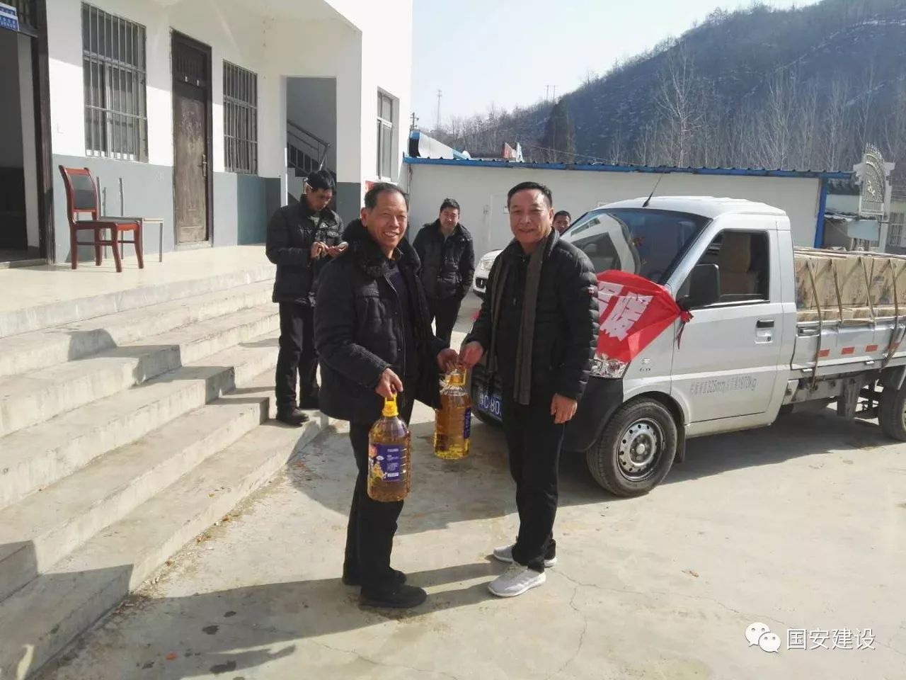 歲末年初,春節(jié)將至。為能讓貧困村的村民們度過一個溫暖祥和的新年,2月8日,受集團公司黨委及黨委書記李道山委托,公司黨委委員、副總經(jīng)理段書祥一行,冒著凜冽的寒風(fēng)來到對口扶貧的嵩縣大坪鄉(xiāng)樓上村,開展“河南國安送溫暖”活動,為困難家庭送去暖心的新春物資和祝福,并詳細(xì)詢問他們的生活以及子女就學(xué)從業(yè)情況,祝愿他們度過一個歡樂、祥和的春節(jié)。